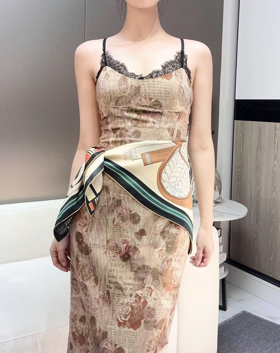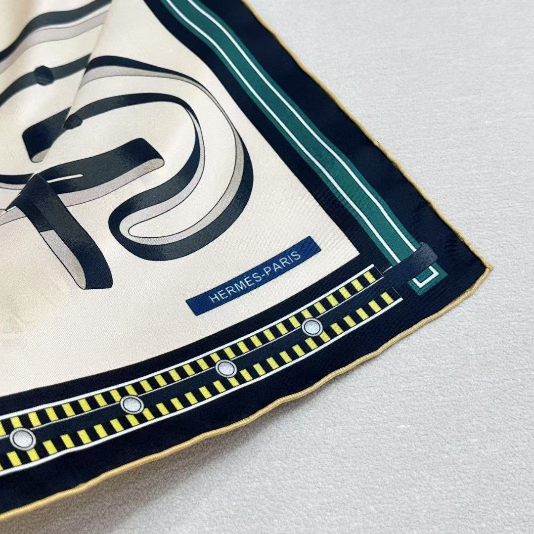 Color: Beige and Dark Green Size: 88.5 x 88.5 cm Material: Silk Twill  The products are 1:1 copies...