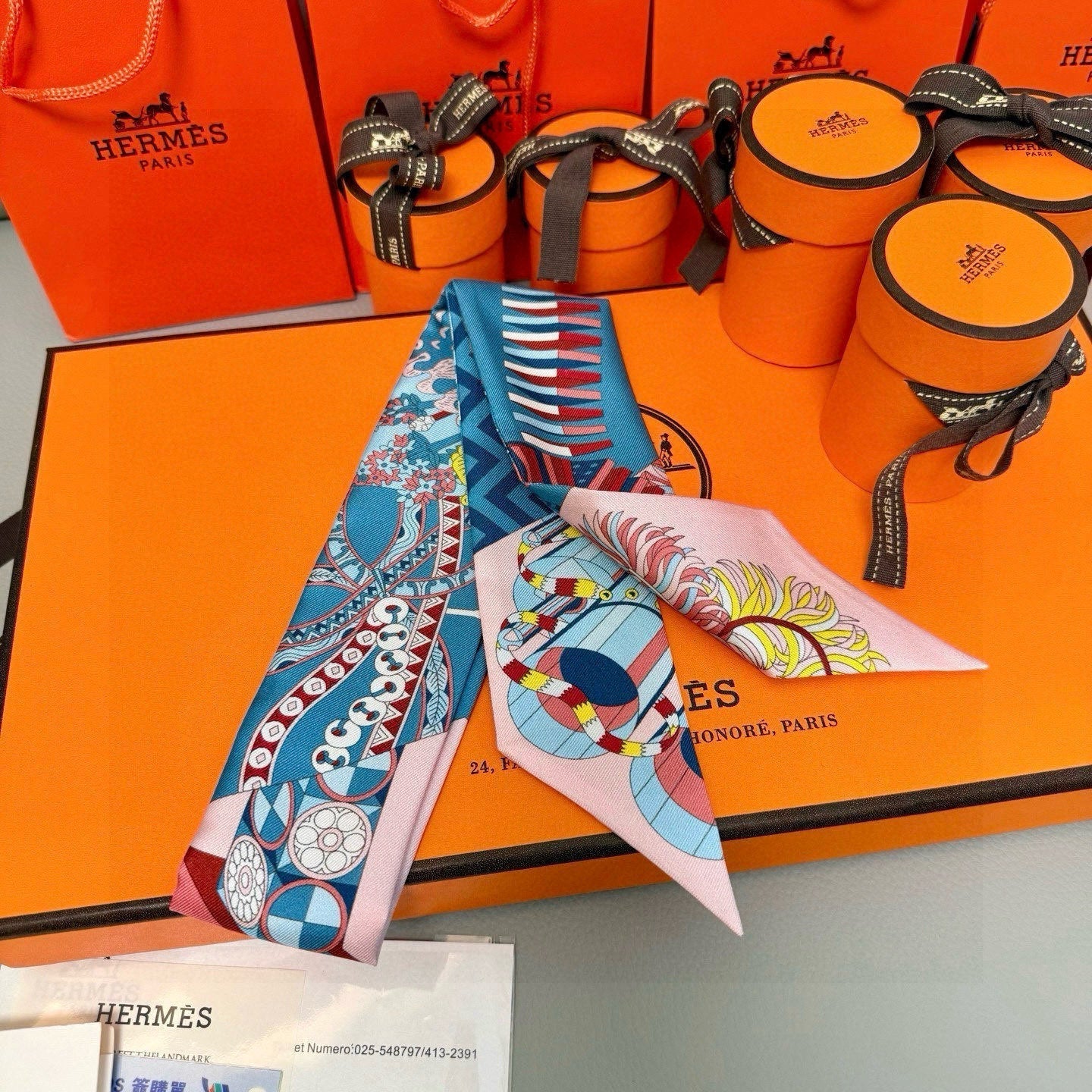 Size: 5 x 86.5 cm Material: Silk Twilly  The products are 1:1 copies of the original version...