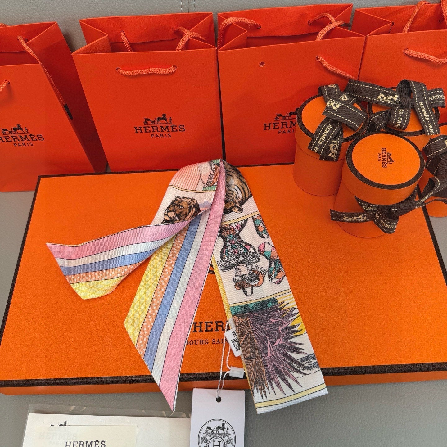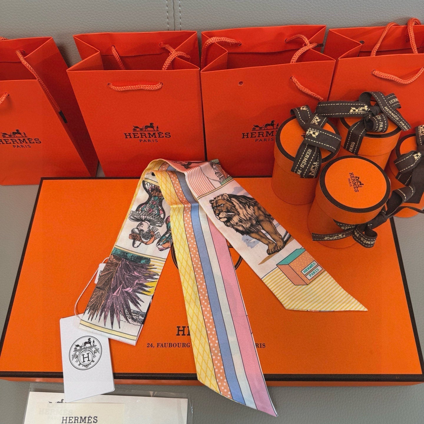 Size: 5 x 86.5 cm Material: Silk Twilly  The products are 1:1 copies of the original version...