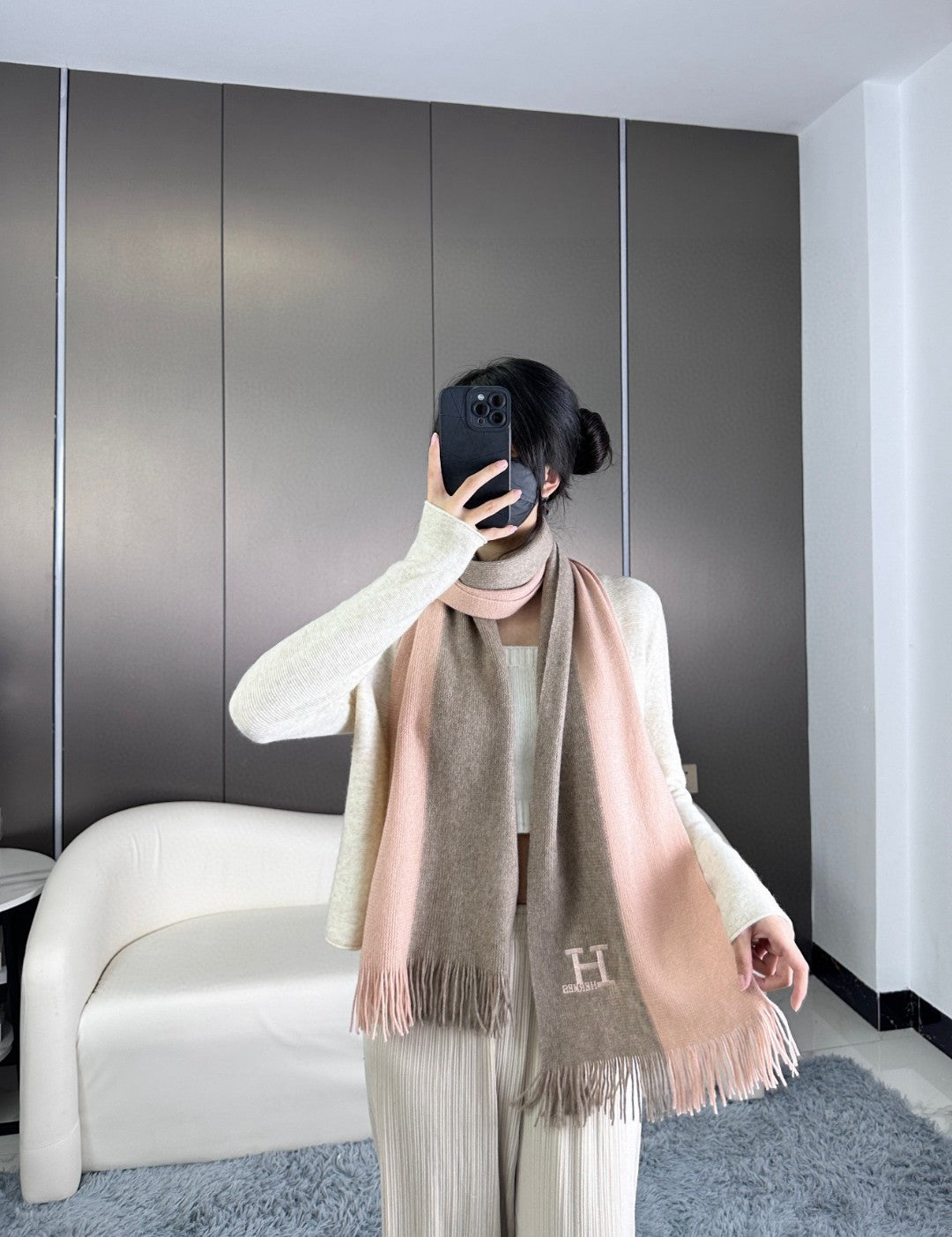 Color: LIGHT PINK MIX GREY Size: 180 X 30 CM Material: PURE CASHMERE  The products are 1:1...