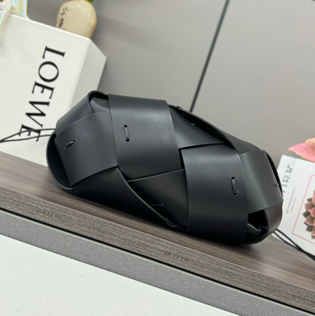 LOE INTERLACED HOBO 38 BAG IN BLACK CALFSKIN