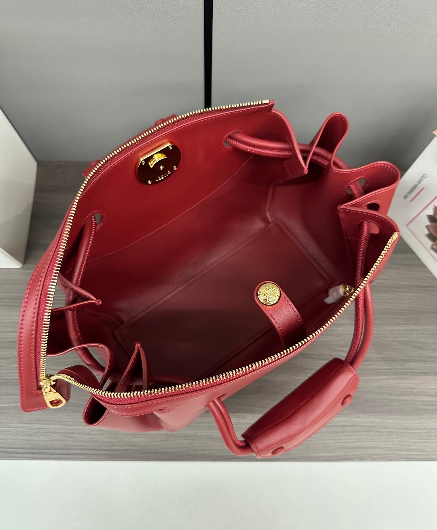 LOEWE 25S MEDIUM MADRID BAG 23 IN CHERRY RED CALFSKIN GOLD HARDWARE