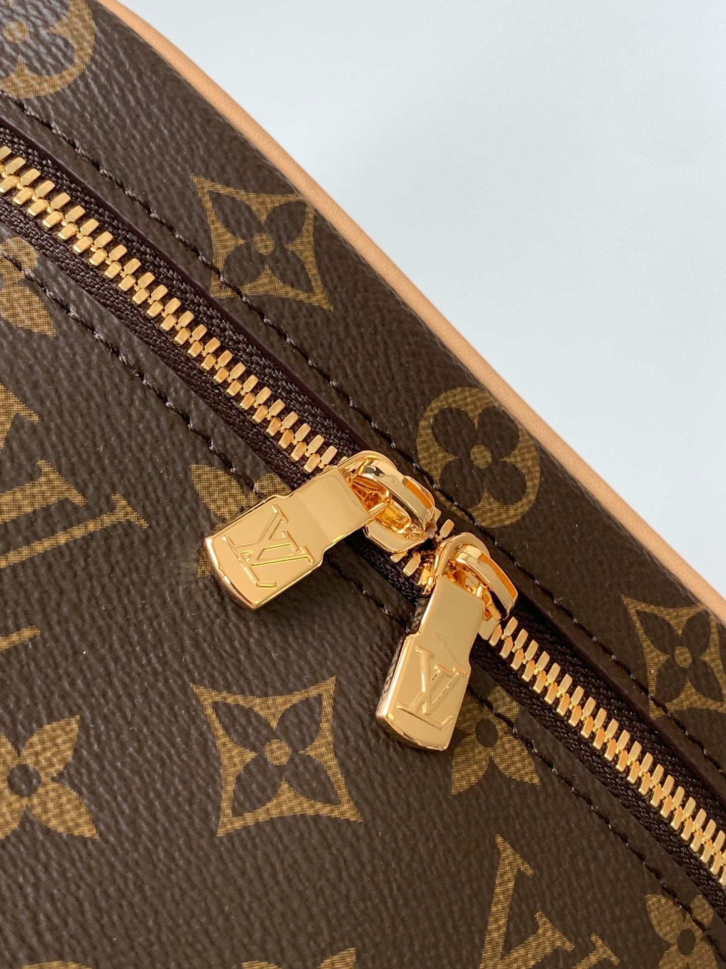 DESCRIPTION Monogram coated canvas Cowhide-leather trim Washable coated canvas lining Gold-color hardware Double zip closure system Handle:...