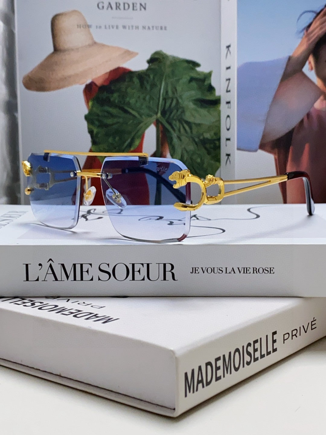 PANTHÈRE RIMLESS RECTANGULAR FRAME SUNGLASSES 543542 IN METAL
