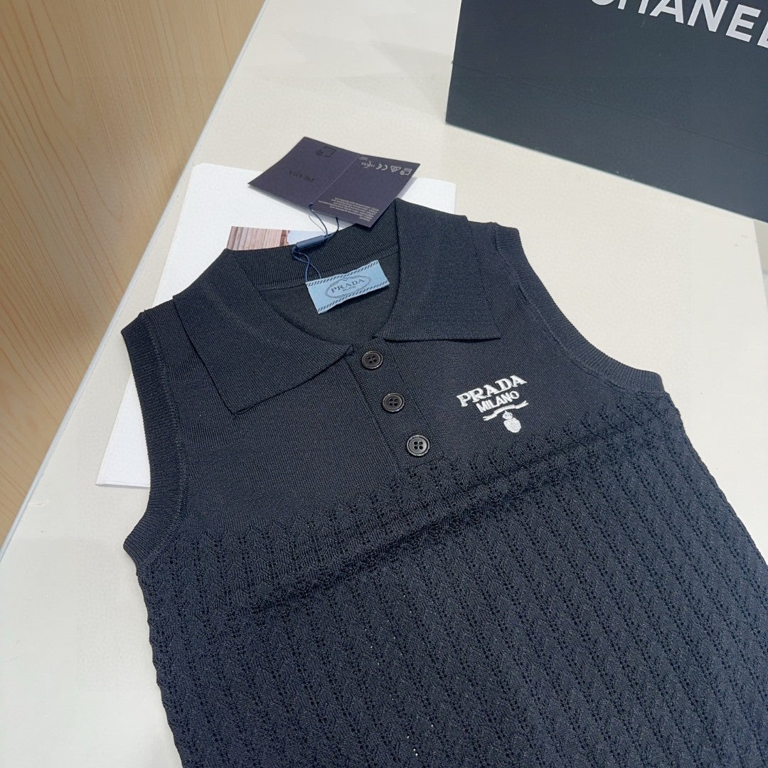 POLO TANK TOP 638006 IN BLACK COTTON RIBBED KNIT