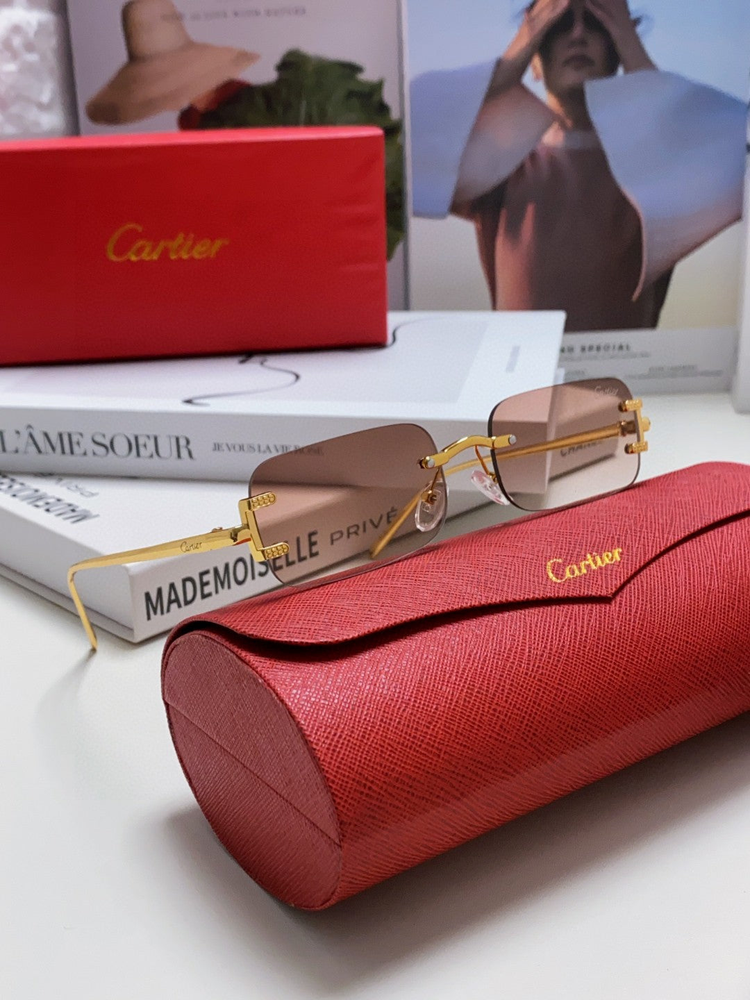 SANTOS RIMLESS RECTANGULAR FRAME SUNGLASSES 562068 IN METAL