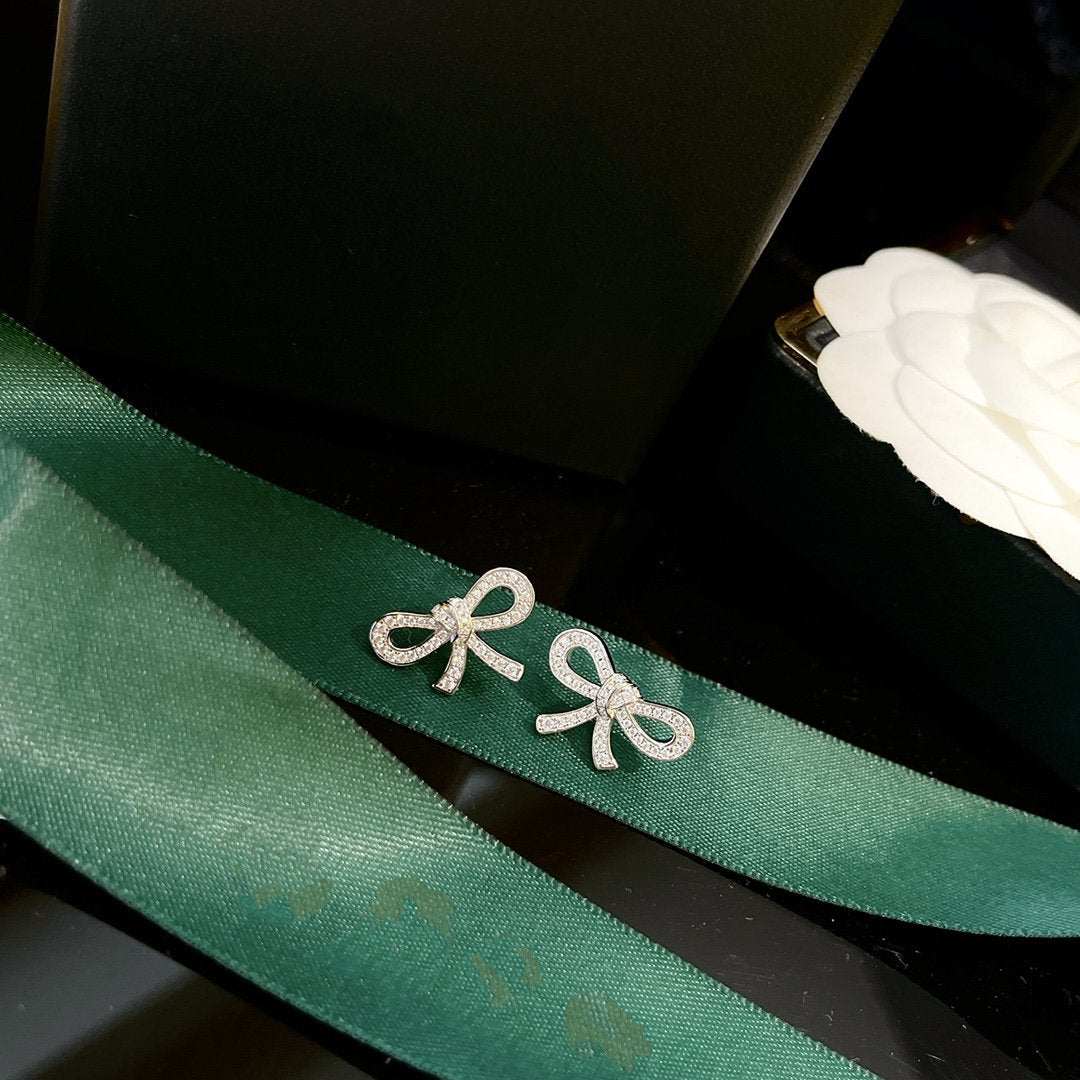 TILDA BOW MINI SILVER DIAMOND STUD EARRINGS